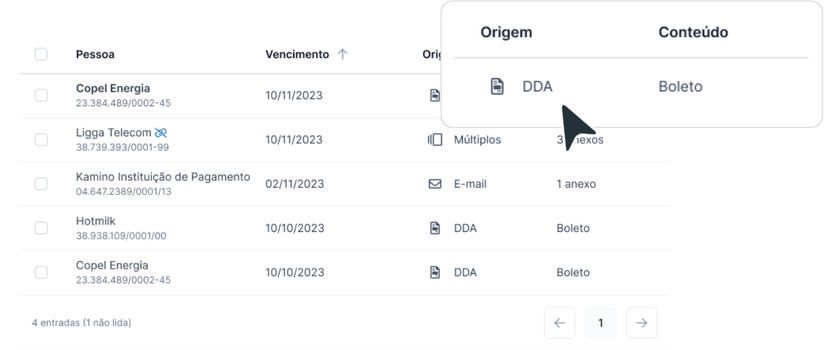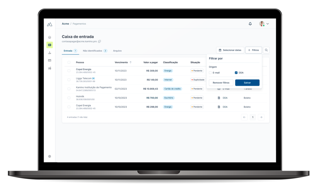 Endereços de e-mail personalizados serão disponibilizados para que seus fornecedores enviem pagamentos diretamente para a plataforma. Os boletos serão identificados e lançados automaticamente.
