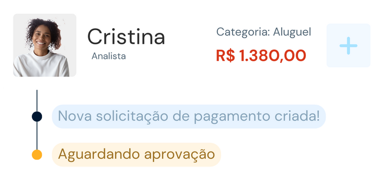 Adicione membros do seu time à plataforma e receba solicitações de pagamento com todos os documentos e informações que você precisa. É possível solicitar tanto um reembolso quanto o pagamento de um prestador de serviço.