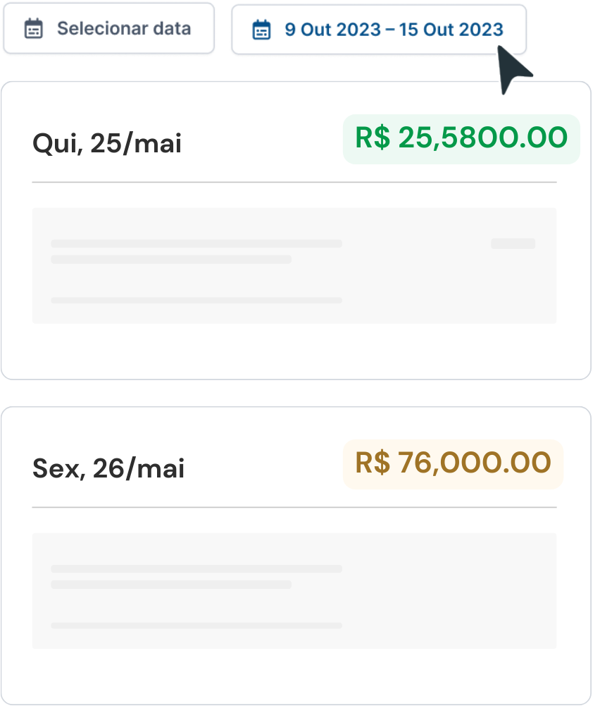 Filtre os pagamentos por sua data de vencimento e visualize a quais estão pendentes.