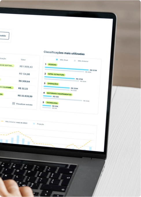 Compare, projete e classifique despesas com facilidade. Acompanhe a evolução dos seus gastos e analise a sua variação em relação ao mês anterior. Lançamentos futuros são projetados automaticamente e os seus maiores gastos são elencados em um ranking.